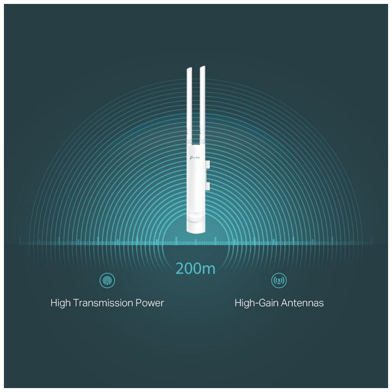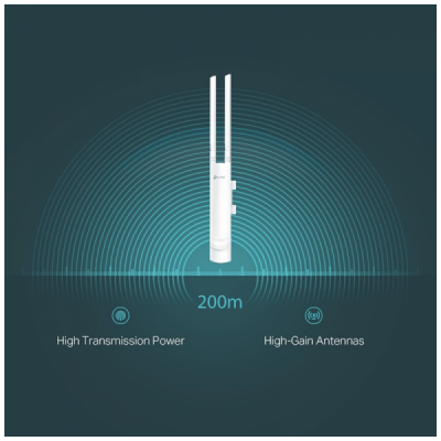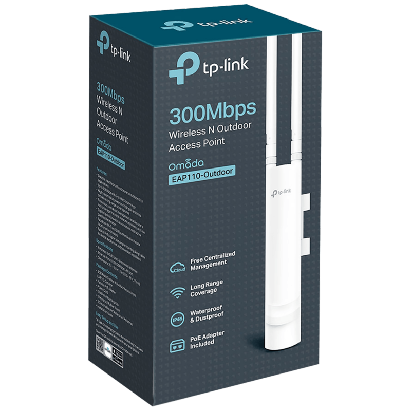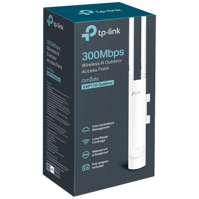 Wireless N Access Point, pruža do 300Mbps brzine prijenosa, 1 x LAN port, 24 V pasive PoE, 2 x 3 dBi externe Omni antene, IP65, 2,4 GHz 802.11 b/g/n, snaga 27 dBm max., 64 / 128 / 152-bit WEP / WPA / WPA2-Enterprise, WPA-PSK / WPA2-PSK enkripcija, Omada aplikacija