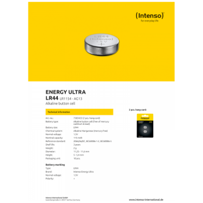Brzi pregled (Intenso) (Intenso) Baterija, A13/PR48, 1.45 V, pakiranje... 10,00 KM Dodaj u korpu Dostupnost: 150 Na skladištu Garancija 12 mjeseci