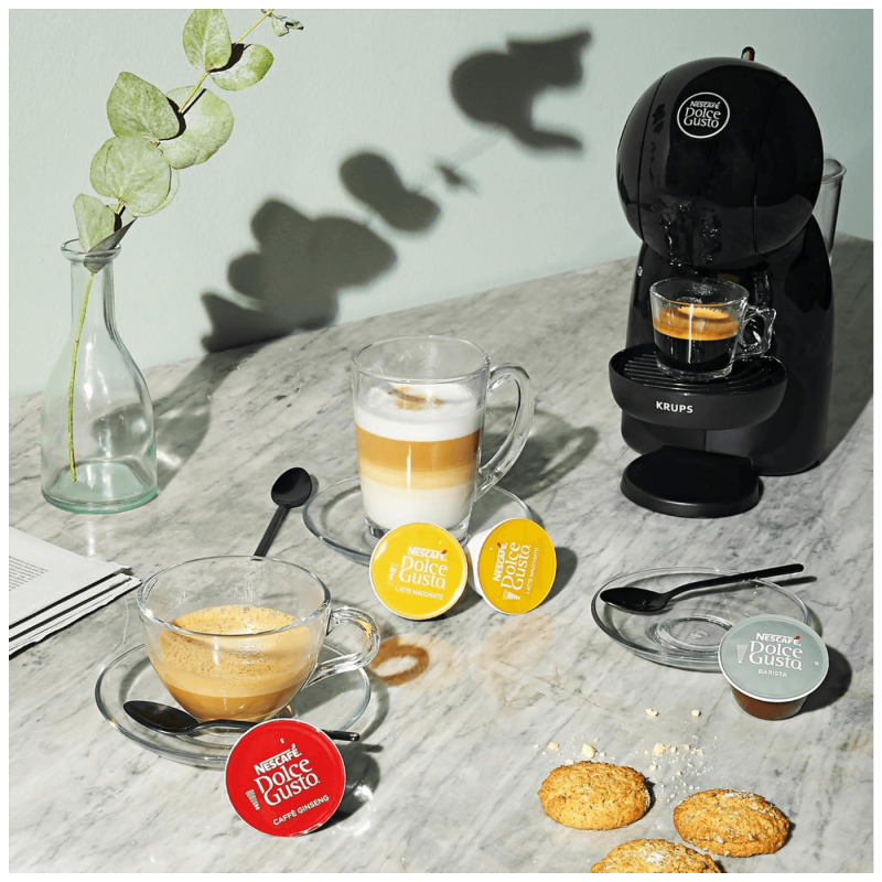 Aparat za kafu na kapsule Krups KP1A3 Nescafe Dolce Gusto Piccolo XS je sa svojim kompaktnim dimenzijama savršen za male kuhinje. Njegov moderni oblik s elegantnom i manjom konstrukcijom za jednsotavno upravljanje pomoću ručice. Uz njegovu pomoć možete pripremiti više od 30 vrućih ili hladnih pića.