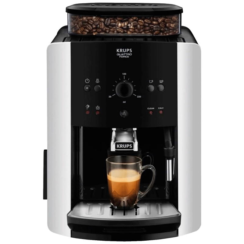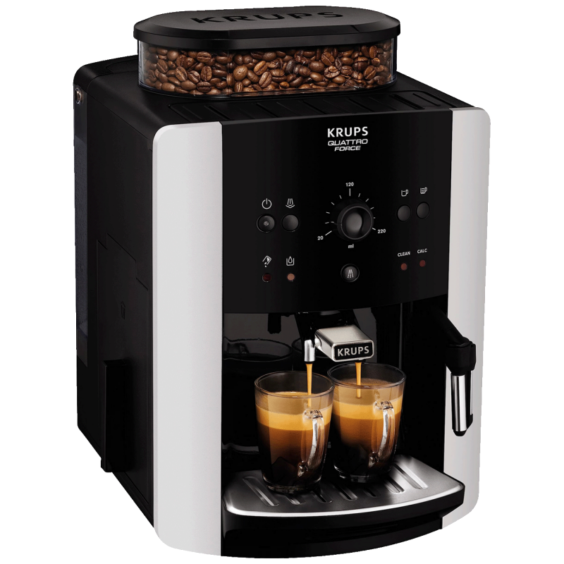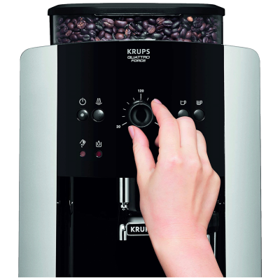 KRUPS Quattro Force optimizira svaki korak procesa proizvodnje kafe od zrna do šoljice: s 20% brže mljevenje, ultra glatko sabijanje, izvanredno cjeđenje i naprednu odvodnju za dugotrajnu izvedbu.