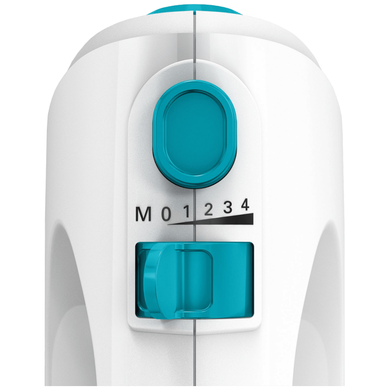 Ručni mikser, snaga motora 375 W, tih, ali snažan motor bez poteškoća tuče vrhnje i gnječi tijesto do savršenstva, 4 radnih brzina + turbo, ergonomski oblikovano kućište za rukovanje bez napora, prikladno za dešnjake i ljevake, ručni mikser i dodatni pribor jednostavno se čiste. Sav dodatni pribor, metlice za miješanje i tučenje, mogu se prati u perilici posuđa, odvojena tipka za izbacivanje metlica, 2 standardne metlice za miješanje, 2 kuke za miješanje od nehrđajućeg čelika