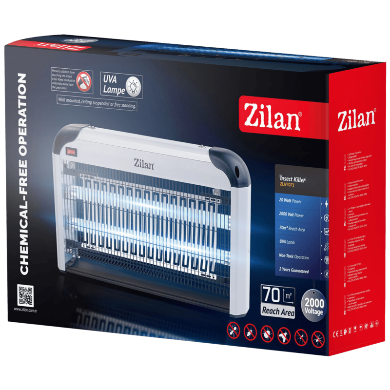 Električna zamka radi na principu UV-A svjetlosti kojim privlači insekte osjetljive na svjetlost kao što su: muhe, komarci, moljci.