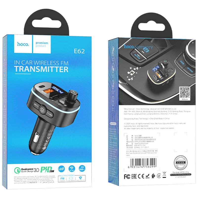 E62 Brzi, auto punjač, BT v5.0, FM transmiter, s USB QC 18W i Type-C PD 20W izlazom