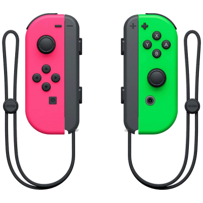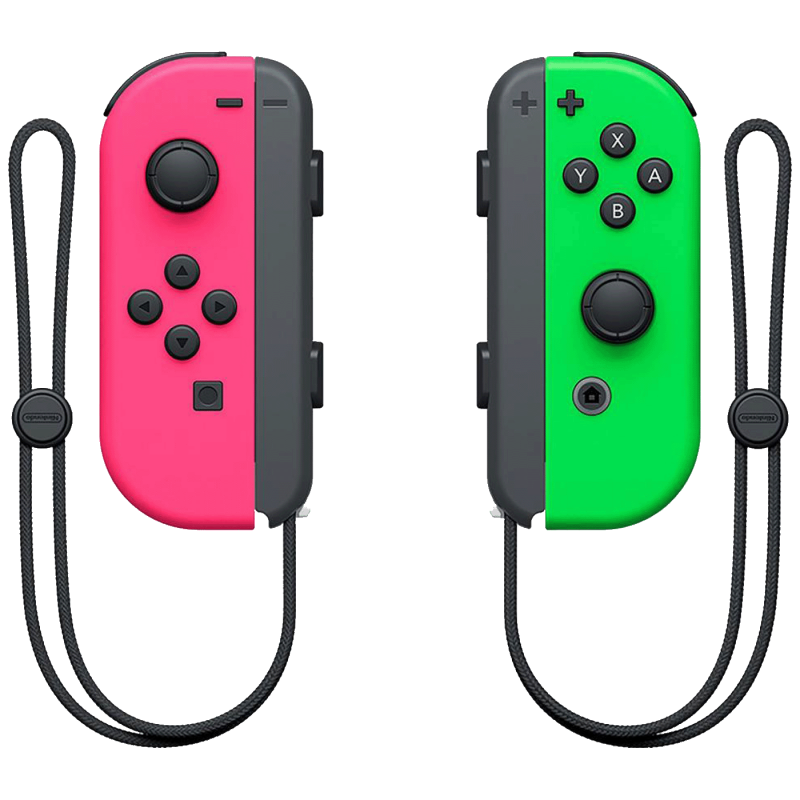 Pakiranje uključuje 1 lijevi Joy-Con, 1 desni Joy-Con i 2 Joy-Con trake, koje omogućuju udobnije držanje i smanjuju rizike u igrama koje zahtijevaju, na primjer, mahanje.
