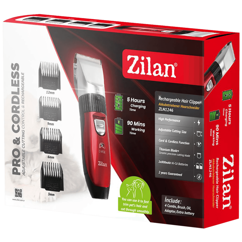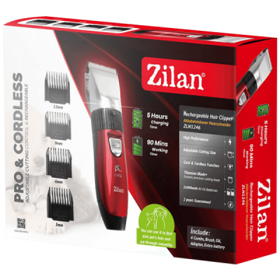 Pribor: adapter, 4 češlja ( 3,6,9,12 mm ), četka, ulje, dodatna baterija