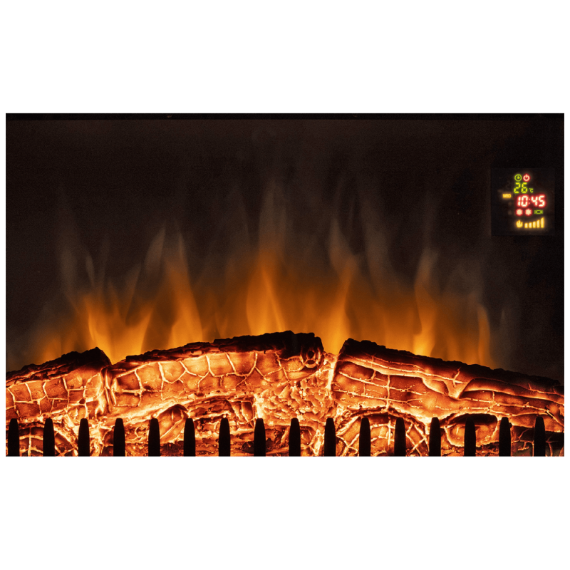Elektični kamin (grijalica) sa ventilatorom, ugradbeni, snaga grijača 1000W / 2000W, realan efekt sagorijevanja drveta, efekt plamena i grijanje se može koristiti odvojeno, ručno i upravljanje preko daljinskog upravljača, LED izvor svjetlosti, 5 brzina svjetlosnih efekata, tjedni program, detekcija otvorenog prozora, dimenzije 600 x 440 x 200 mm, ugradbene dimenzije 595 x 435 mm, napajanje 230 VAC / 50Hz