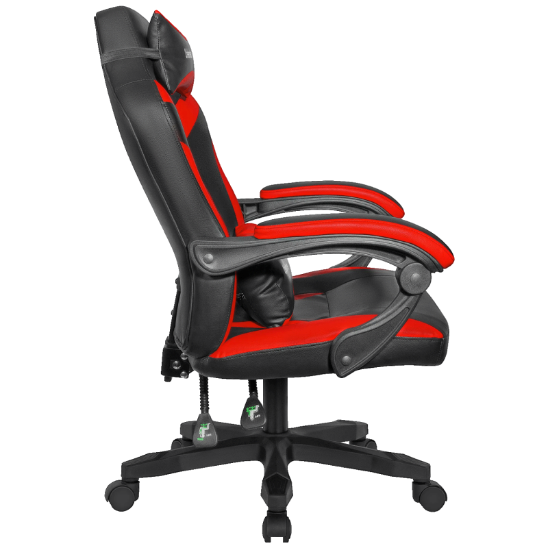 Defender Master Red-Black je gejmerska/uredska stolica sa sportskim izgledom i ergonomski oblikovanim sjedištem i naslonom, dizajnirana za duže sate sjedenja — bilo da igraš igre, radiš za računarom ili učiš. Presvučena je mekom, izdržljivom eko-kožom (PU), a sjedište i leđa imaju punjenje visokog kvaliteta koje pruža udobnost. Stolica ima podesivu visinu, nagib naslona do oko 135°, i točkiće promjera 50 mm koji omogućavaju lako kretanje. Konstrukcija je dovoljno čvrsta da podrži korisnike do oko 140 kg, a dimenzije i oblik su pogodni za korisnike visine otprilike 150–185 cm.