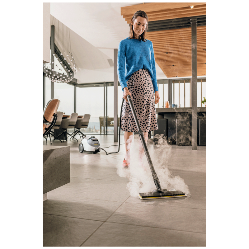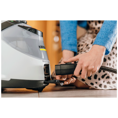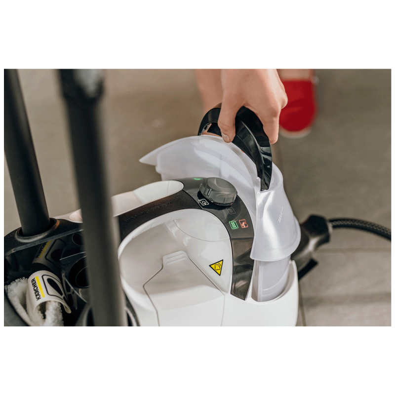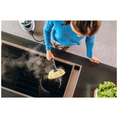 Kärcher SC 5 EasyFix Iron je snažan parni čistač dizajniran za temeljito čišćenje doma uz pomoć pare, bez upotrebe hemikalija. Zahvaljujući visokom pritisku pare efikasno uklanja tvrdokornu prljavštinu, masnoću i bakterije sa različitih površina poput pločica, podova, kuhinjskih elemenata i kupatila. Uređaj omogućava higijensko čišćenje uz minimalan napor, čineći ga praktičnim rješenjem za svakodnevno održavanje doma.