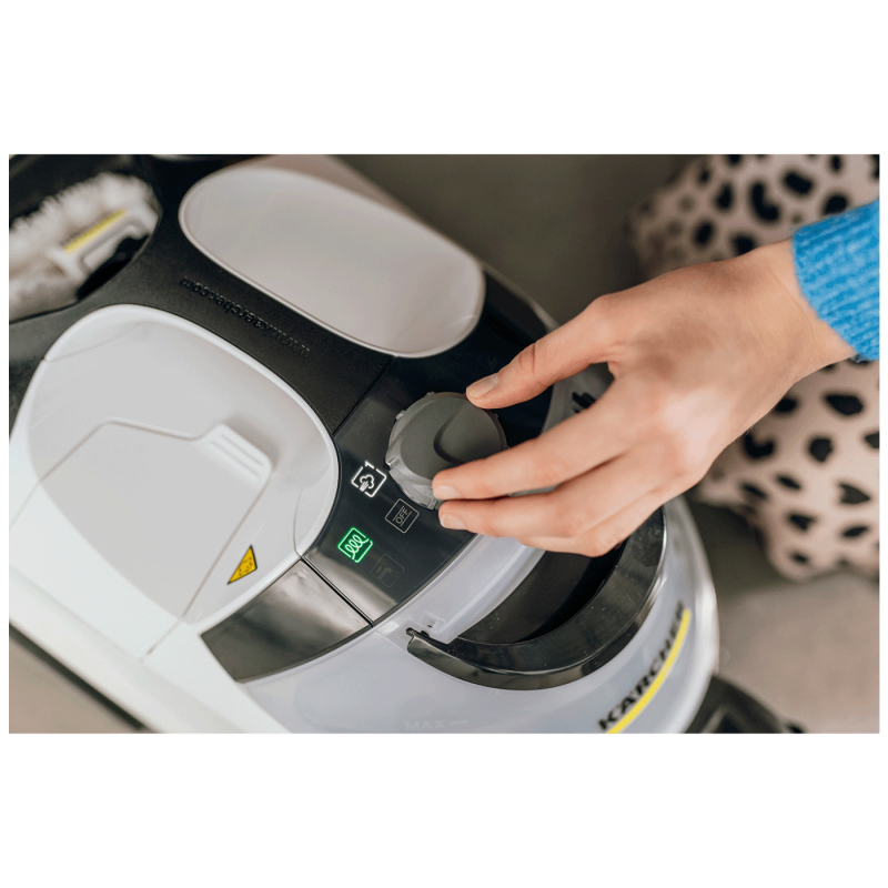 Ovaj model dolazi i sa peglom na paru, što omogućava brzo i efikasno peglanje odjeće uz snažan kontinuirani mlaz pare. EasyFix podna mlaznica sa sistemom na čičak omogućava jednostavno postavljanje i uklanjanje krpe bez kontakta s prljavštinom. Zahvaljujući funkciji dopunjavanja rezervoara tokom rada, čišćenje se može obavljati bez prekida.