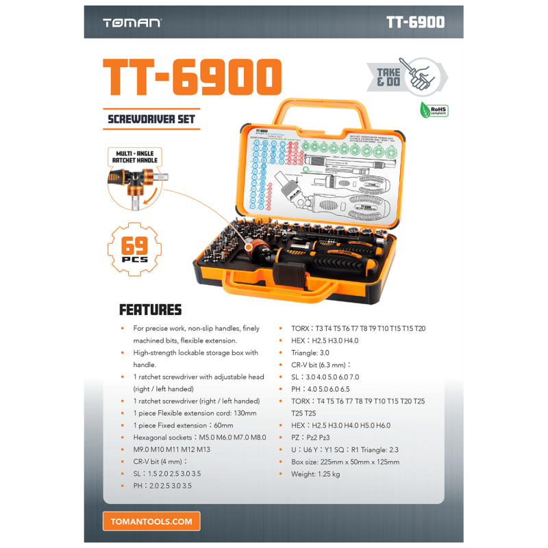 Za precizan rad, neklizajuće ručke, fino obrađeni alati + fleksibilni produžetak. Sve u jednom, što je neophodno za rad oko kuće. Zbog male veličine i male težine, može se ponijeti bilo gde. Kutija za skladištenje velike čvrstoće sa ručicom.