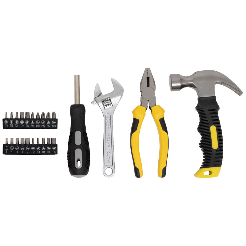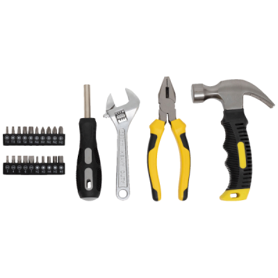 Set uključuje kombinirana kliješta od 165 mm, idealna za savijanje i rezanje kabela i žica, i čekić s kandžama od 160 mm (8oz), savršen ne samo za zabijanje čavala, već i za njihovo uklanjanje. Podesivi ključ je dug 150 mm i ima otvor do 20 mm, što ga čini jednostavnim za korištenje za vijke i matice različitih veličina. Svi ovi alati čuvaju se u praktičnoj, čvrstoj plastičnoj kutiji za pohranu, koja organizira alate na pregledan i kompaktan način. Kutija je dimenzija 280 x 45 x 185 mm pa se lako može pospremiti gotovo svugdje, a uz težinu od 1,2 kg lako ju je i prenijeti ako je potrebno.