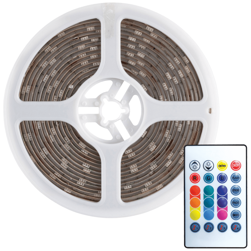 LED traka, RGB ( crvena / plava / zelena ), dužina trake 5 met., izvor svjetlosti 150 LED SMD 5050 ( 30 LED / met. ), 2000 lm ( 200 lm / met. ), 6500K boja svjetlosti, snaga 24W ( 4.8 W / met. ).