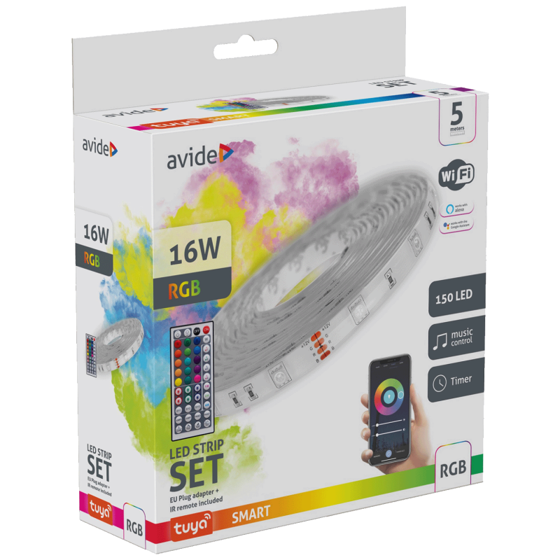 Avide LED Strip Blister 12V 16W RGB 5m TUYA može biti savršen izbor za uređenje doma ili ureda, zabave ili ugodne večeri. Lako se postavlja i koristi, tako da svatko može lako uživati u šarenoj i atmosferičnoj rasvjeti.