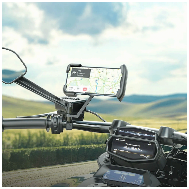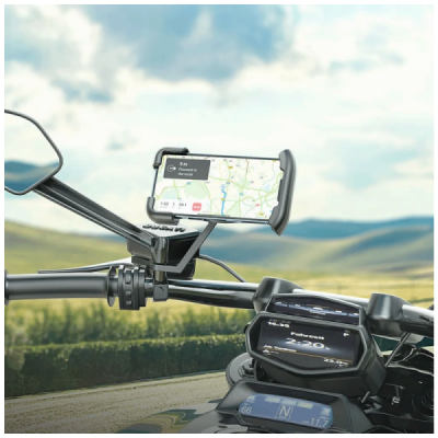 Produljiva, podesiva ruka s pomičnom glavom omogućuje vam da pribor i uređaj montiran u njemu postavite prema vlastitim željama, okomito ili vodoravno - kako ne bi blokirali vidljivost i kako biste mogli udobno koristiti navigaciju.