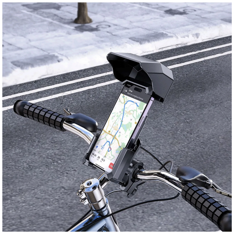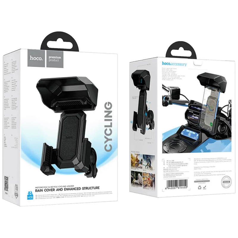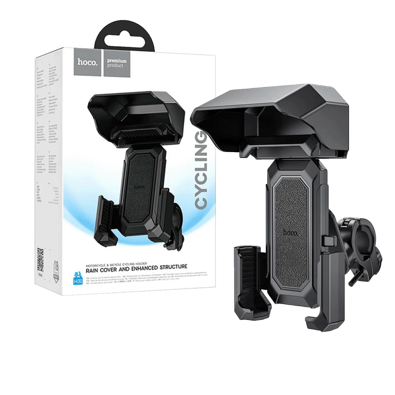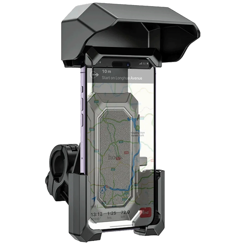 Snažan držač za pametni telefon Hoco H31 montiran na okvir upravljača bicikla, skutera, romobila, motocikla ili kolica. Držač je kompatibilan s pametnim telefonima s dijagonalom ekrana od 4,5 do 7,0".