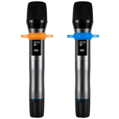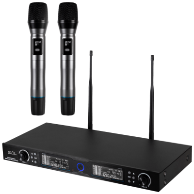 Set 2 bežična mikrofona i prijemnik, domet do 140 met. ( na otvorenom ), radna frekvencija UHF 518 - 690 MHz, audio izlaz 0 - 500 mW, osjetljivost 105 dB, sučelje 2 x XLR / Ø6.3 mm jack, višenamjenski digitalni zaslon, prikaz frekvencija / status kanala / stanja baterije, mjerač jačine RF radio signala, AF mjerač razine audio signala, 2 x 100 kanala za odabir, automatsko ili ručno podešavanje, brzo infracrveno uparivanje, uključivanje / isključivanje bez buke, dimenzije: mikrofon Ø50 / 35 x 265 mm, prijemnik 420 x 55 x 220 mm, napajanje : mikrofon 2 x AA baterije ( nisu uključene u pakiranje ), prijemnik 230 V ~ ( adapter ), mogućnost ugradnje u rack policu