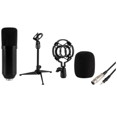 Profesionalni studijski mikrofon sa postoljem, izvrsna Hi-Fi kvaliteta zvuka, kondenzatorski mikrofon visoke osjetljivosti, karakteristike kardioidnog usmjeravanja, mono, visoka razina izlaza, niska razina buke, širok dinamički raspon, zahtijeva vanjsko napajanje (fantomsko napajanje), stabilno postolje.