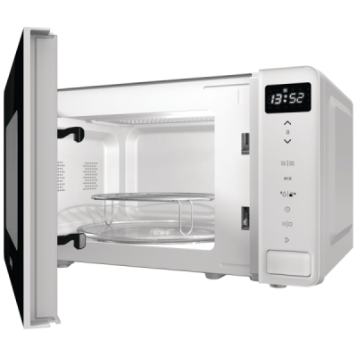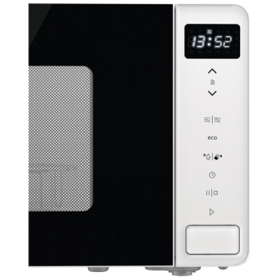 Mikrovalna pećnica, snaga 800 W, volumen pećnice 20 litara, 5 nivoa mikrovalne snage, 1 infra grijač, snaga grila 1000 W, standardna tehnologija proizvodnje mikrovalova, rotirajuči stakleni tanjur promjera 27 cm, rešetka za gril, elektronsko upravljanje na dodir, Time display, SmartControl - pametno upravljanje, mogućnost isključivanja display-a, mogućnost isključivanja zvučnog signala, timera 60 (min).