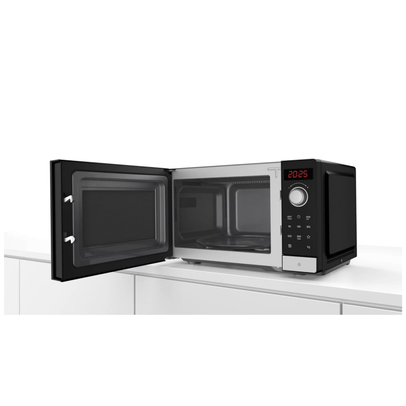 Zapremina 20 lit., stakleni rotirajući tanjur, promjer 27 cm, bočno otvaranje, na lijevo, gumb za otvaranje vrata