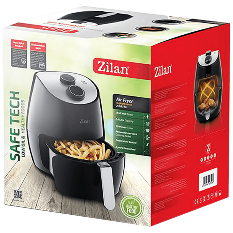 Friteza na vrući zrak, snaga 1350 W, zapremina posude 2.6 lit, odvojiva posuda za lakše čišćenje, premaz koji sprječava ljepljenje, mehaničko upravljanje, 30 minutni timer, automatsko isključivanje, gumirane nogice za stabilnost, dijelovi perivi u perilici posuđa, Rapid Air - omogučava prženje, pećenje sa malo ili bez ulja.