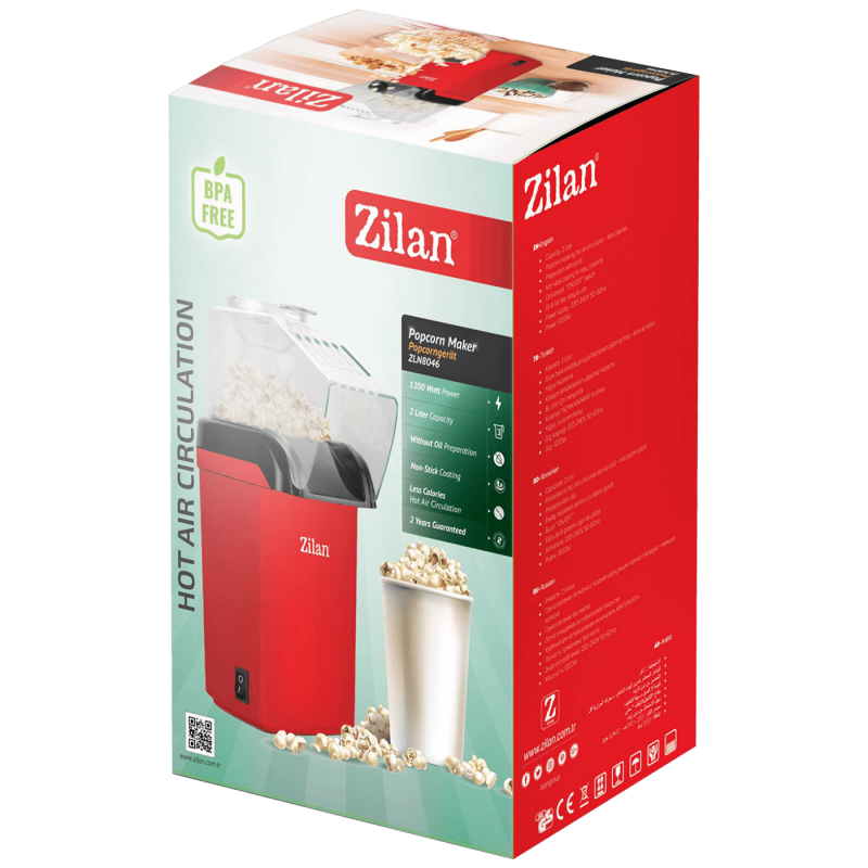 Aparat za kokice, brzo i jednostavno pripremanje kokica bez upotrebe ulja, cirkulacija vrućeg zraka obavlja sav posao, rezultat ukusne kokice sa manje kalorija, kapacitet 2lit, premaz non-stick protiv ljepljenja, ON /OFF prekidač, napajanje 220 - 240 V / 50 Hz