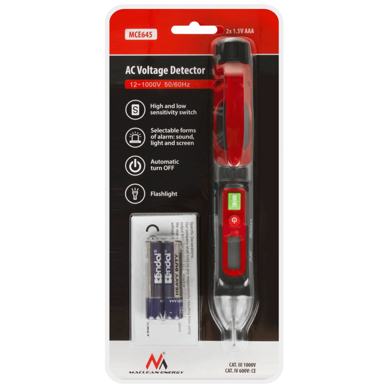 Voltažni tester se napaja sa 2 AAA baterije. Baterije su uključene u set uz proizvod. Automatsko isključivanje osigurava dug vijek trajanja baterije.