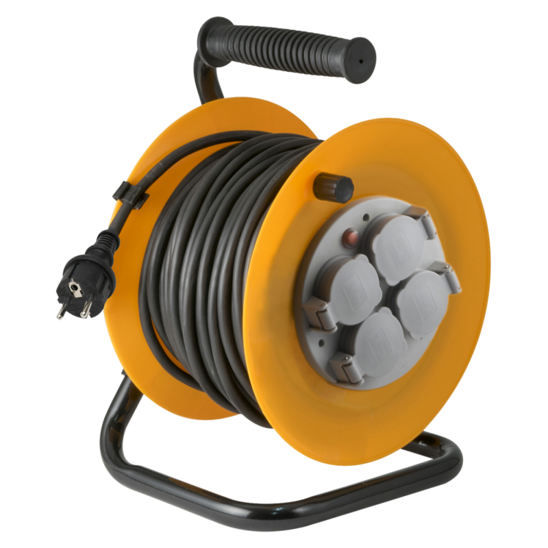 Motalica za kabel, HJR 10-50, kabel dužina 50 metara, gumirani kabel HO7RN-F, 3 x 1.5 mm², 4 utičnice sa uzemljenjem, utičnice zaštićene poklopcem, toplinska zaštita, gumb za reset toplinske zaštite, plastično kućište , ručka za lakše nošenje, 250V / max. 1000W u namotaju / 3000W razmotano, stupanj zaštite IP44