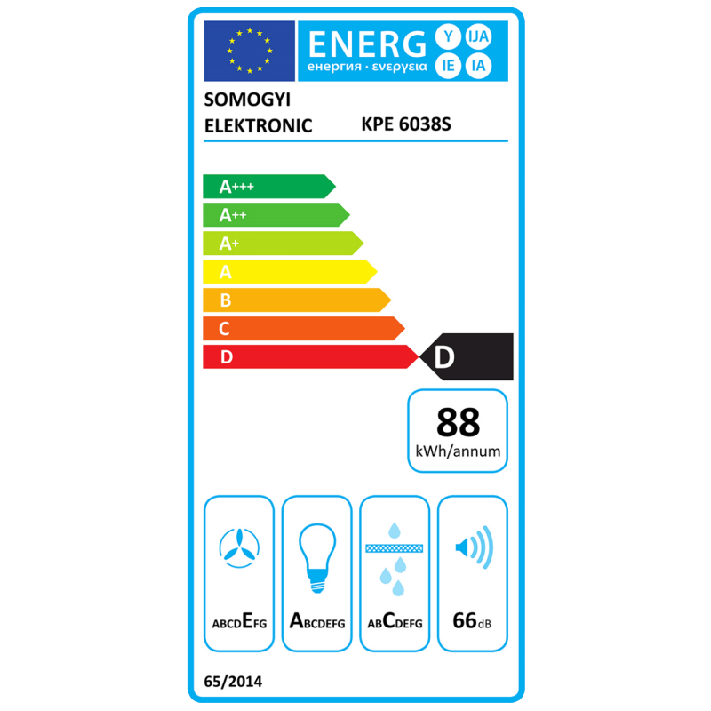 Širina proizvoda je 60 cm i može da dostigne do 380 m³/h protoka vazduha, čime se obezbeđuje efikasno usisavanje pare čak i tokom intenzivnih aktivnosti kuhanja.