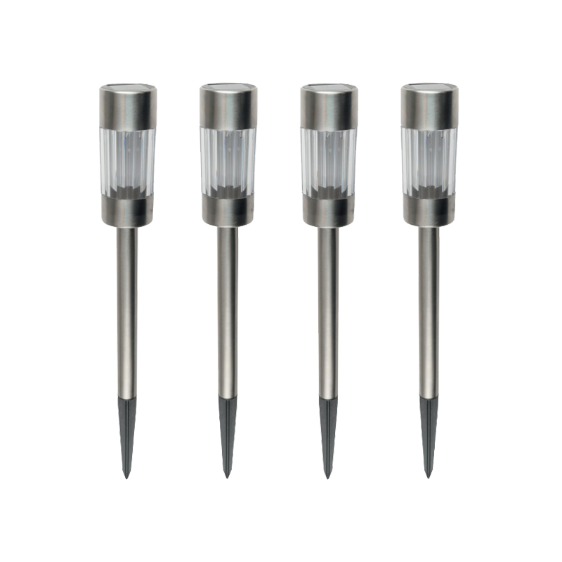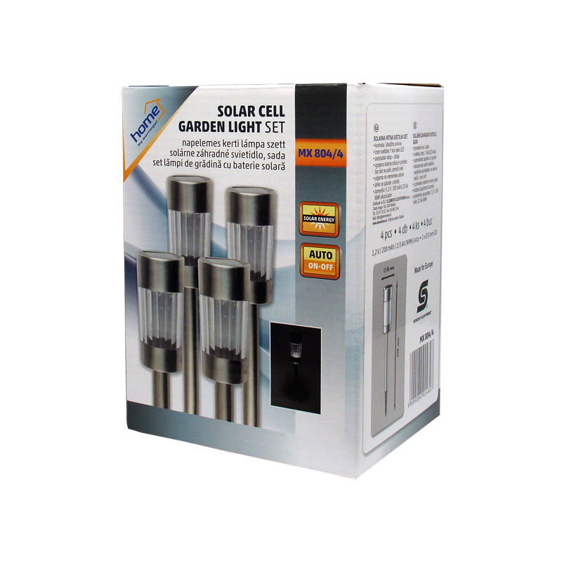 Solarna vrtna LED lampa, set 4 komada, automatsko uključivanje / isključivanje, ugrađena solarna ćelija i punjač za bateriju, zamjenjiva 2/3 AA NI-Mh baterija 1,2V / 300mAh, otporna na vremenske uvjete, izvor svjetlosti 1 x LED, kombinacija metal / plastično tijelo