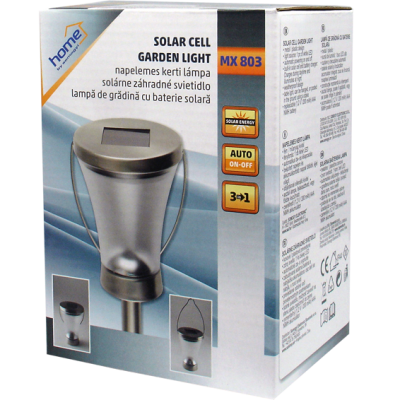 Solarna vrtna LED lampa, automatsko uključivanje / isključivanje, ugrađena solarna ćelija i punjač za bateriju, zamjenjiva AAA NI-Mh baterija 1,2V / 200mAh, otporna na vremenske uvjete, izvor svjetlosti 1 x LED, kombinacija metal / plastično tijelo, postavlja se na zid, stol, u zemlju, dimenzije 90 x 400 mm