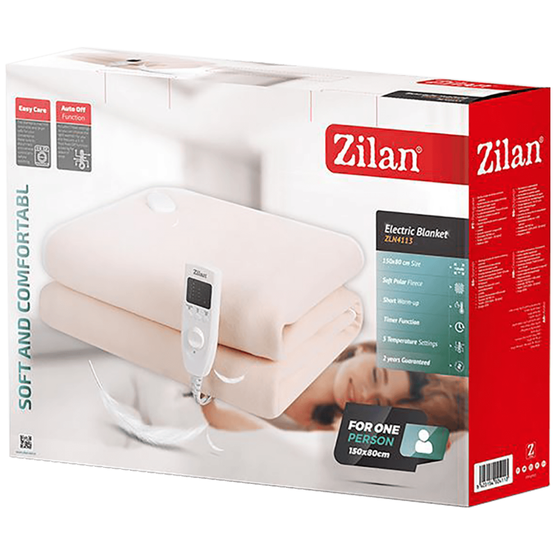 Električna deka, stalna i ravnomjerno raspoređena temperatura, kratko zagrijavanje, mekani materijal, 5 postavki temperature, funkcija timer 1 - 10 h, osigurač struje i temperature, zaštita od pregrijavanja, odvojivi priključak + VDE utikač, perivo, snaga 60 W, dimenzije 150 x 80 cm