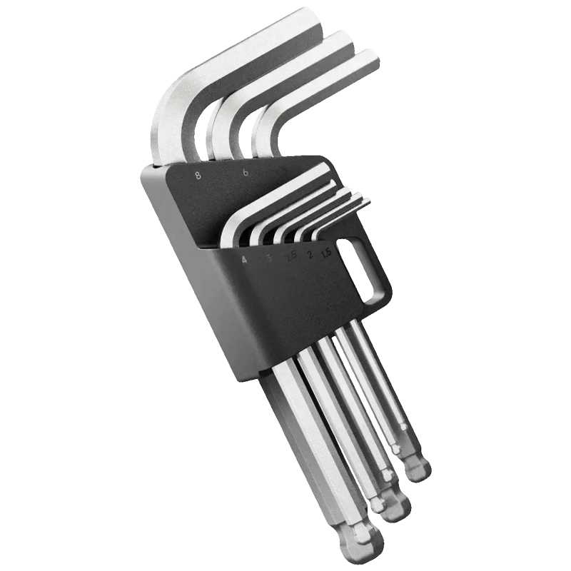 Set imbus ključeva u 8 različitih veličina, izrađen od izdržljivog čelika, s kuglastim krajem od 25° za lakše korištenje pod kutom.