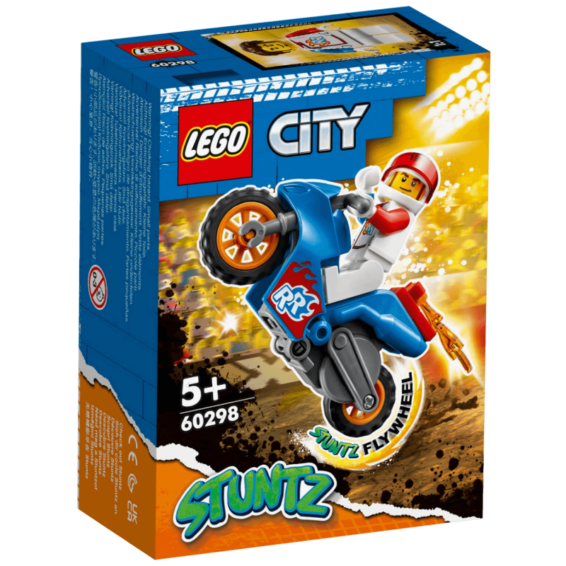 • Neka dječja mašta dobije krila uz komplet igračaka LEGO® City Kaskaderski bicikl raketa (60298) s motociklom sa zamašnjakom i neustrašivim televizijskim junakom Rocketom Racerom iz serije LEGO City.
