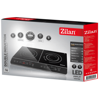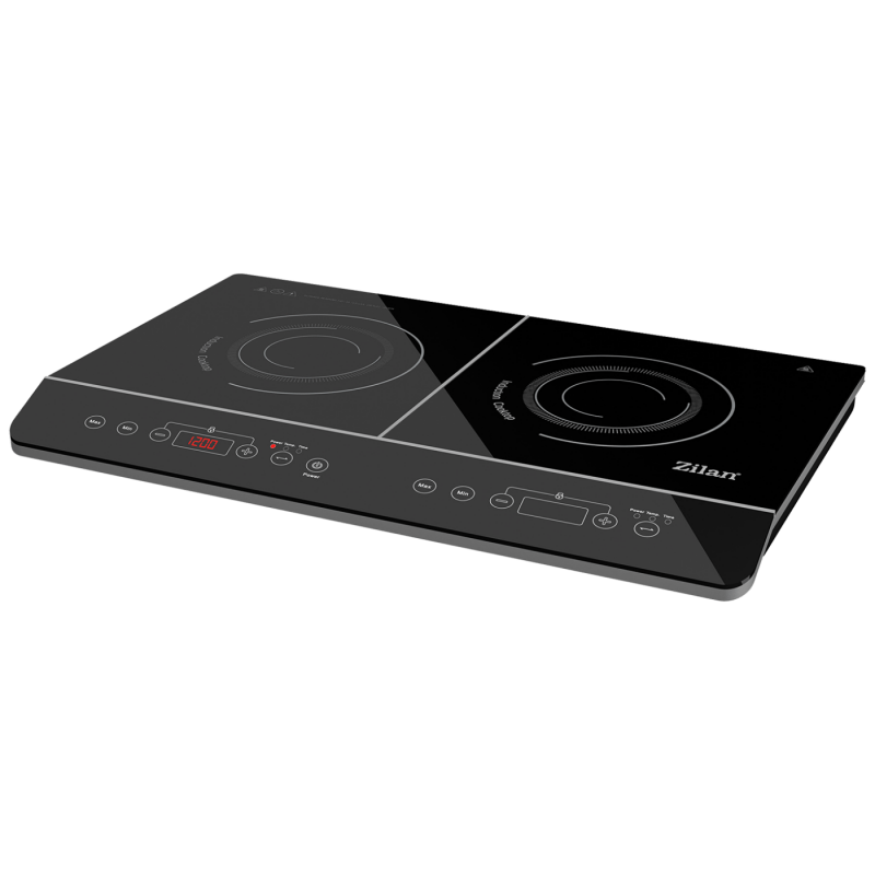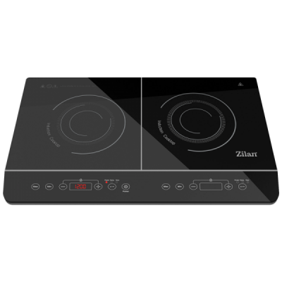 Indukcijsko kuhalo ZLN8088, dvije površine za kuhanje snage 2000 W (lijevo) / 1500 W (desno), površina za kuhanje prekrivena kristalnim staklom velike čvrstoće.