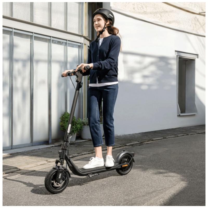 Serija eKickScooter F2 E II, opremljena prednjom disk kočnicom i elektroničkom stražnjom kočnicom, pruža vozaču brže i stabilnije kočenje.