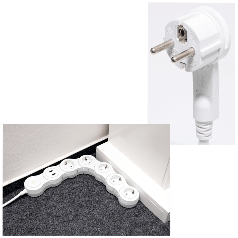 Produžni kabel s prekidačem, 5 uzemljenjih utičnica + USB utičnica, H05VV-F 3G, presjek kabla 3 x 1,5 mm², dužina kabla 1.4 met., osvjetljen glavni prekidač, 250 V AC / 16 A / 3500 W, 2 x USB 5 V DC max 2.4 A ( total ).