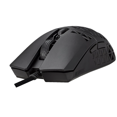 ASUS TUF Gaming M4 Air je ultralagan žičani gaming miš dizajniran za igrače koji žele brzo i precizno praćenje pokreta uz minimalnu težinu. Ovaj miš ima optčki senzor visoke rezolucije do 16 000 DPI koji omogućava precizno praćenje i kontrolu u igrama, uz mogućnost podešavanja DPI-a kroz poseban taster. Konstrukcija koristi Air Shell dizajn koji smanjuje ukupnu težinu na samo oko 47 g, ali zadržava robusnost. Površina je tretirana ASUS Antibacterial Guard antibakterijskim premazom za higijenski osjećaj, dok IPX6 vodootporna zaštita čuva elektroniku od prosipanja tekućina i vlage. Miš ima šest taktilnih programabilnih tastera, fleksibilni TUF Gaming Paracord kabel i 100 % PTFE nožice koje omogućavaju glatko klizanje na podlozi. Armoury Crate softver omogućava jednostavnu prilagodbu profila, funkcija tastera i performansi.
