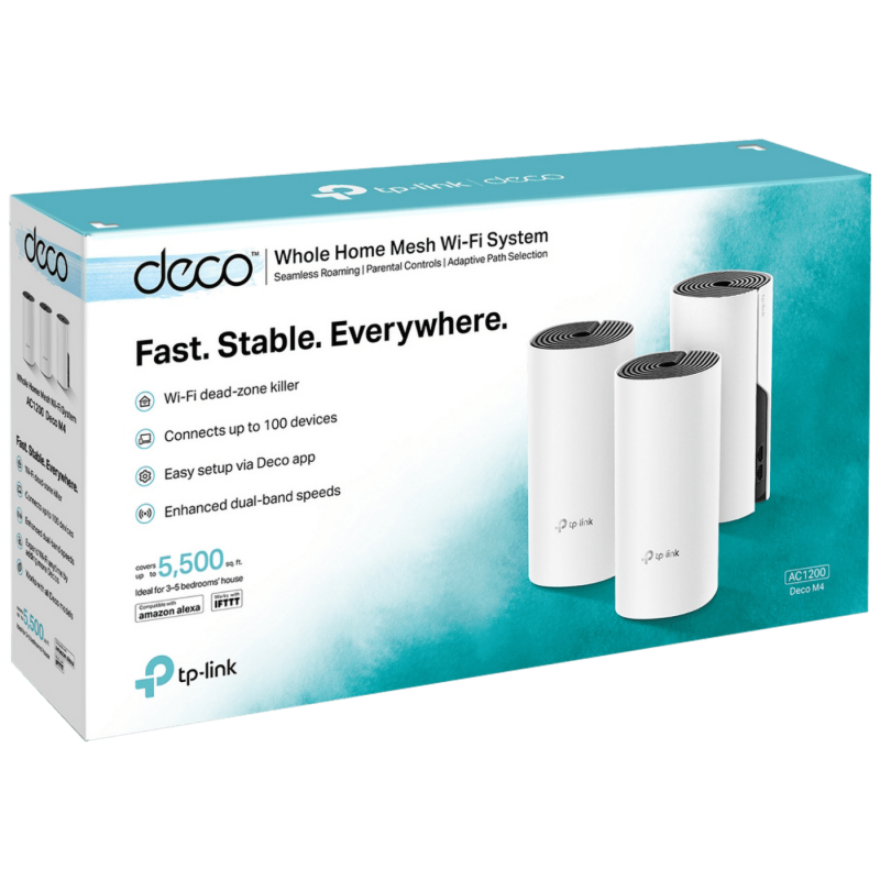 Deco M4 pruža brze i stabilne veze sa brzinama do 1167 Mbps i radi sa glavnim provajderom internetskih usluga (ISP) i modemom.