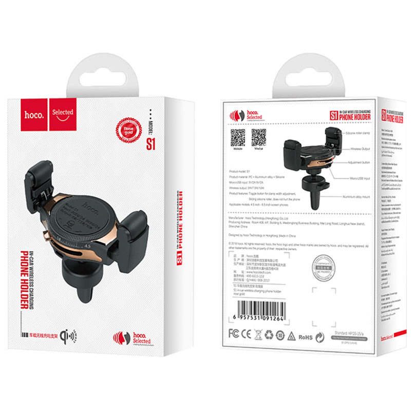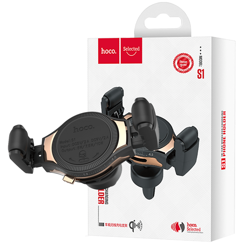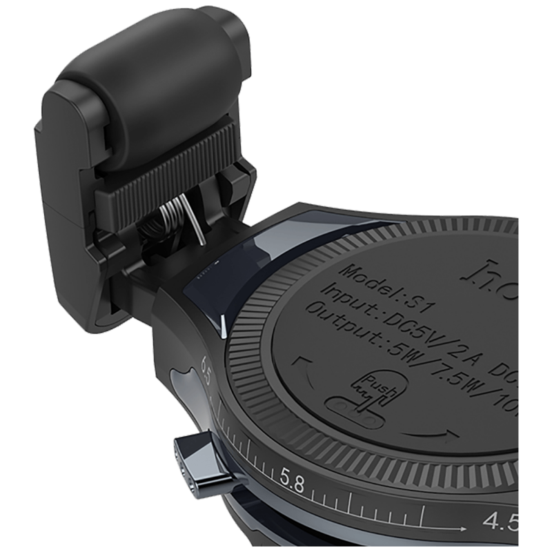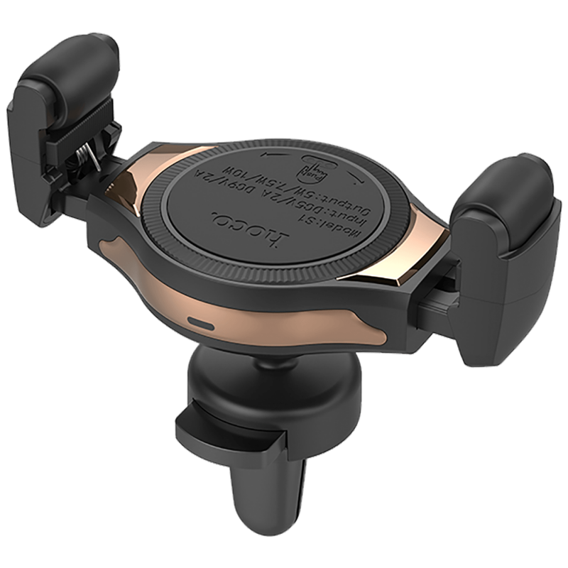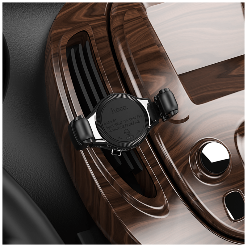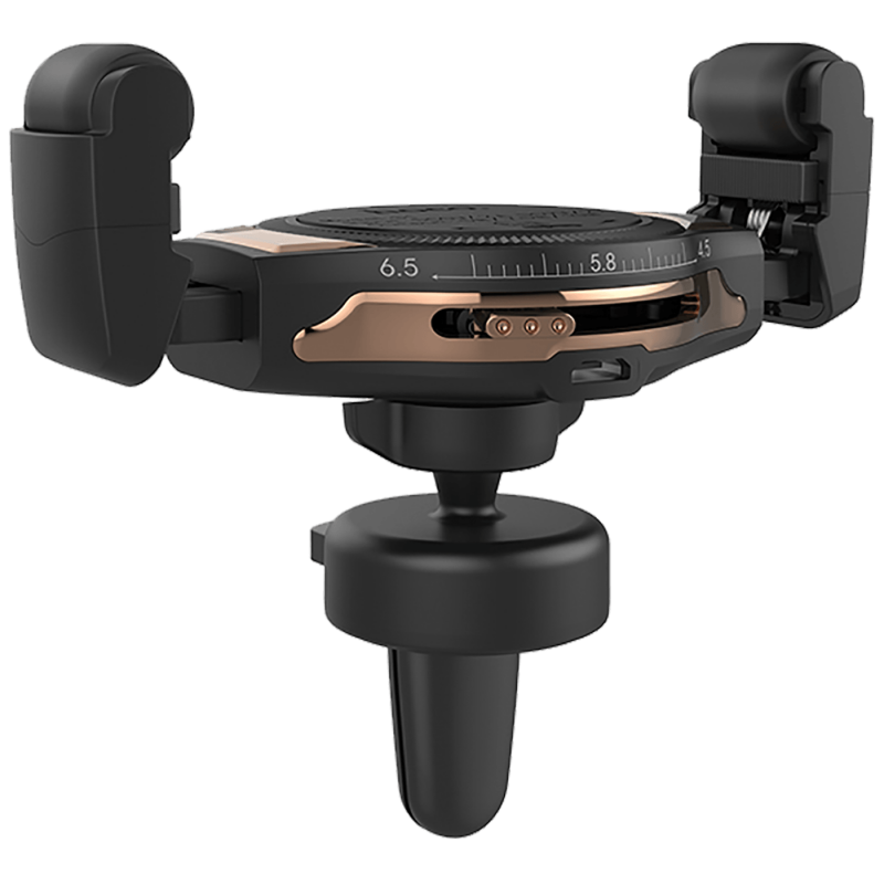 Bežićni Auto punjač, 5 V / 2 A, 9 V / 2 A, 5 / 7.5 / 10 W, univerzalni, materijal izrade PC - aluminij - silikon, podesivi klizni držač za, montaža umetanjem u ventilacioni otvor na upravljačkoj konzoli