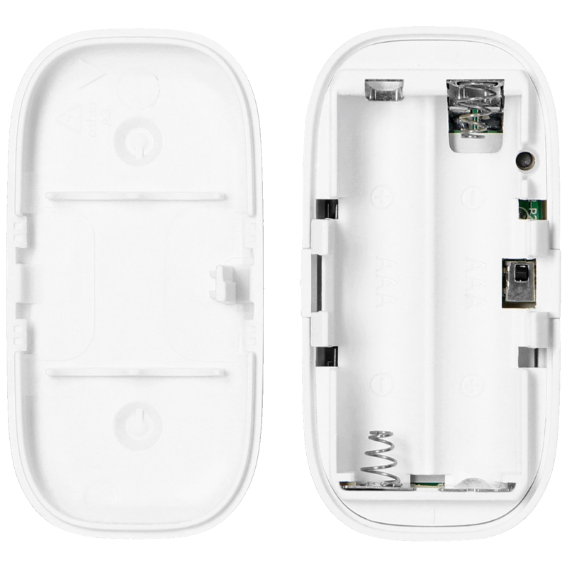 Dimenzije uređaja su 31x21 mm. Napaja se s 2xAAA baterije. Mat bijela boja. Montira se na 3M ljepilo.