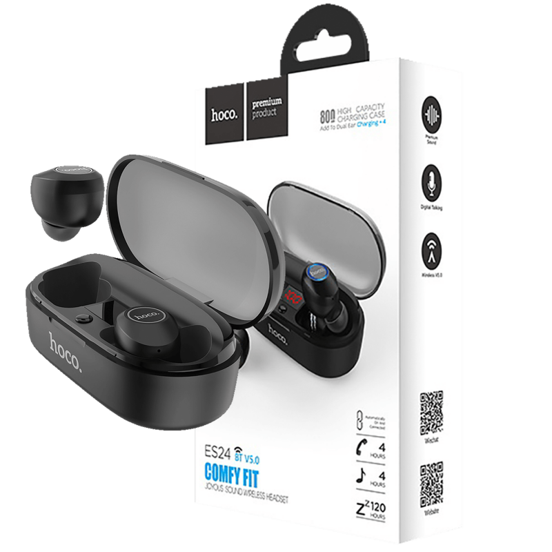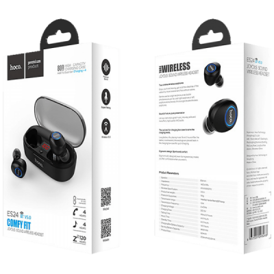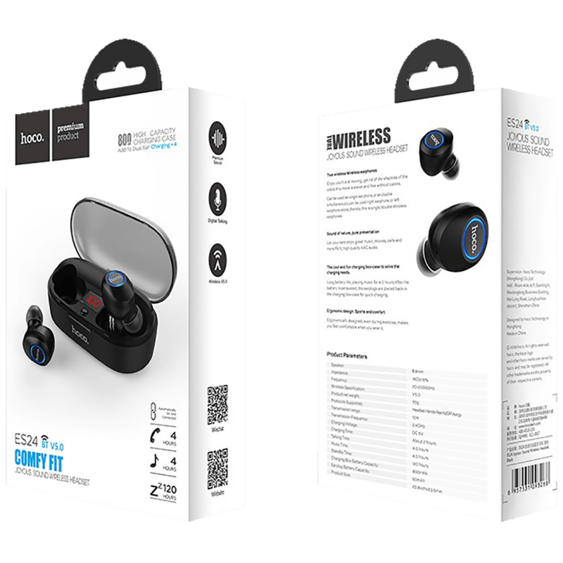 Bežične slušalice, Bluetooth v5.0, domet do 10 met., baterija Li-Polimer 60 mAh, kutija za punjenje 800 mAh, vrijeme punjenja 2 h, vrijeme razgovora do 4 sati, reprodukcija glazbe do 4 sata, vrijeme na čekanju do 120 sati, micro USB kabel, dimenzije slušalice: 23.8 x 21 x 23.5 mm
