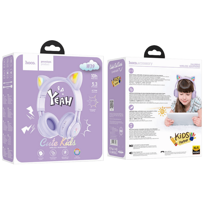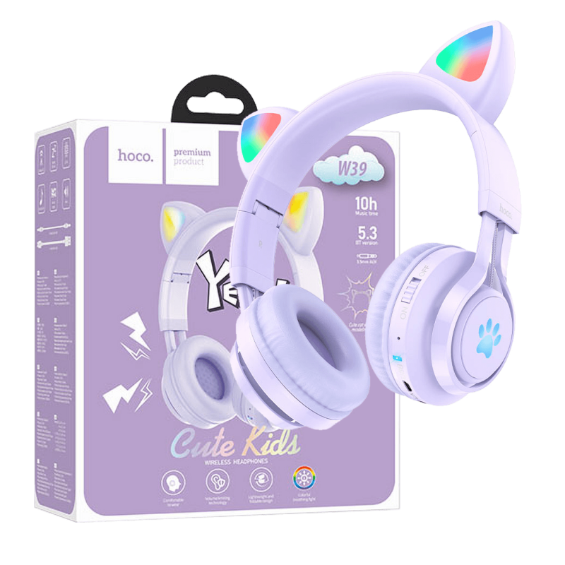 W39 Cat ear bežične slušalice za djecu, BT v5.3, 400mAh baterija za 12 sati korištenja, 120 sati pripravnosti, ograničenje zvuka 85dB, podržava Bluetooth, AUX i druge načine rada
