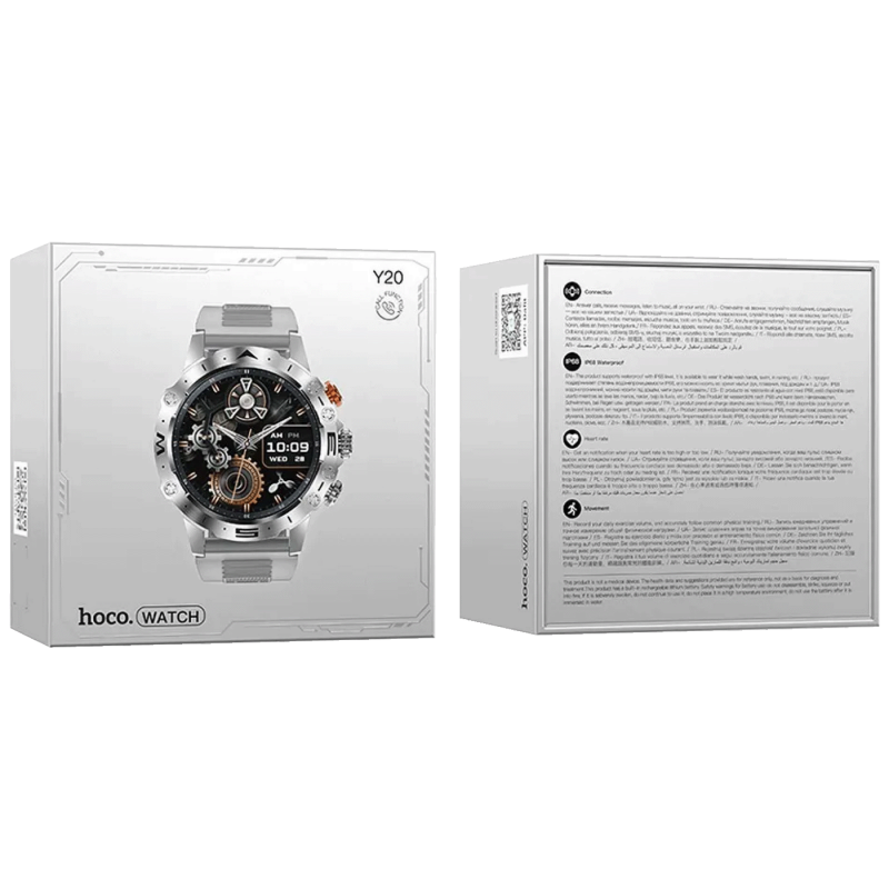 Hoco Y20 pametni sat savršen je za posao, kuću, putovanja ili vježbanje. Opremljen je ekranom u boji, višestrukim sportskim modovima, praćenjem otkucaja srca i zasićenosti kisikom, kao i nadzorom sna. Omogućava obavljanje poziva, upravljanje vezama, pregled kontakata te čitanje poruka i obavijesti.