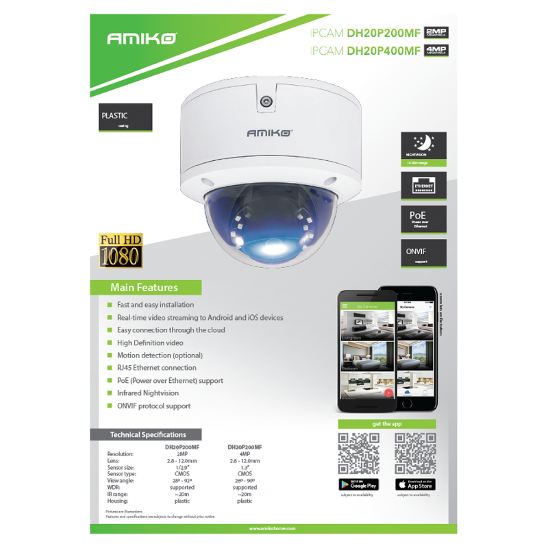 Amiko Home Kamera IP 4 MP, PoE, 1/3" CMOS, HD Lens 2,8 - 12mm