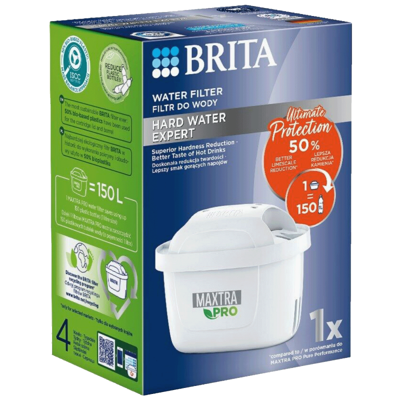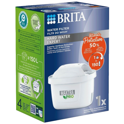 Filter za vodu, Maxtra Pro Hard Water Expert, dizajniran za tvrdu i vrlo tvrdu vodu - Za ljubitelje čaja i kafe Filtrirana voda za tople napitke boljeg okusa. Zašto? Okus se može bolje razviti u mekoj, filtriranoj vodi. - Recite zbogom kamencu Filtarski uložak MAXTRA PRO STRUČNJAK ZA KAMENAC smanjuje tvrdoću vode pa više nije potrebno dosadno rastvaranje kamenca. A kuhinjski uređaji traju duže. Dvostruki dobitak. - Smanjite plastični otpad Svaki BRITA MAXTRA PRO filtarski uložak može filtrirati do 150 litara vode. Smanjite upotrebu plastike i uštedite novac prebacivanjem na BRITA vodu. • Za optimalne rezultate filtriranja na područjima s tvrdom vodom • Uživajte u više arome kod toplih napitaka i vrhunskoj zaštiti uređaja • Smanjuje neugodne mirise i sadržaj tvari koje utječu na okus • Smanjuje kamenac za tople napitke punijeg okusa i zaštitu uređaja • Smanjuje hlor i metale kao što su olovo i bakar • Visoke performanse: super gusta mrežica za filtriranje osigurava iznimno visok stupanj zadržavanja čestica, idealno za starije cjevovode • Održivije nego ikada prije: 50 % materijala na bio-bazi upotrijebljeno je za poklopac filtarskog uloška i kućište (ravnoteža mase) i 99 % se može reciklirati • MicroFlow Technology jamči vrlo učinkovitu filtraciju • MAXTRA PRO filtarski uložak za vodu zamjenjuje do 150 plastičnih boca (od 1 litre) • Filtarski uložak BRITA MAXTRA PRO Hard Water Expert savršeno pristaje uz BRITA vrčeve za filtriranje iz kolekcije Aluna, Marella, Style, Elemaris, Flow i stakleni vrč Glass.