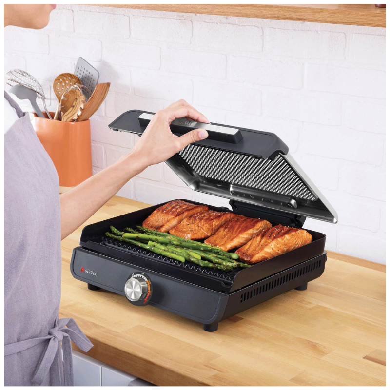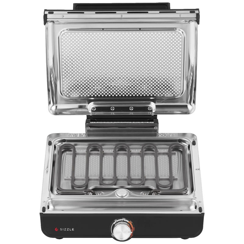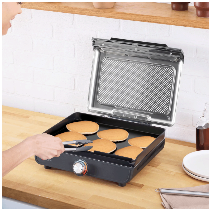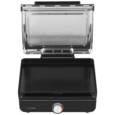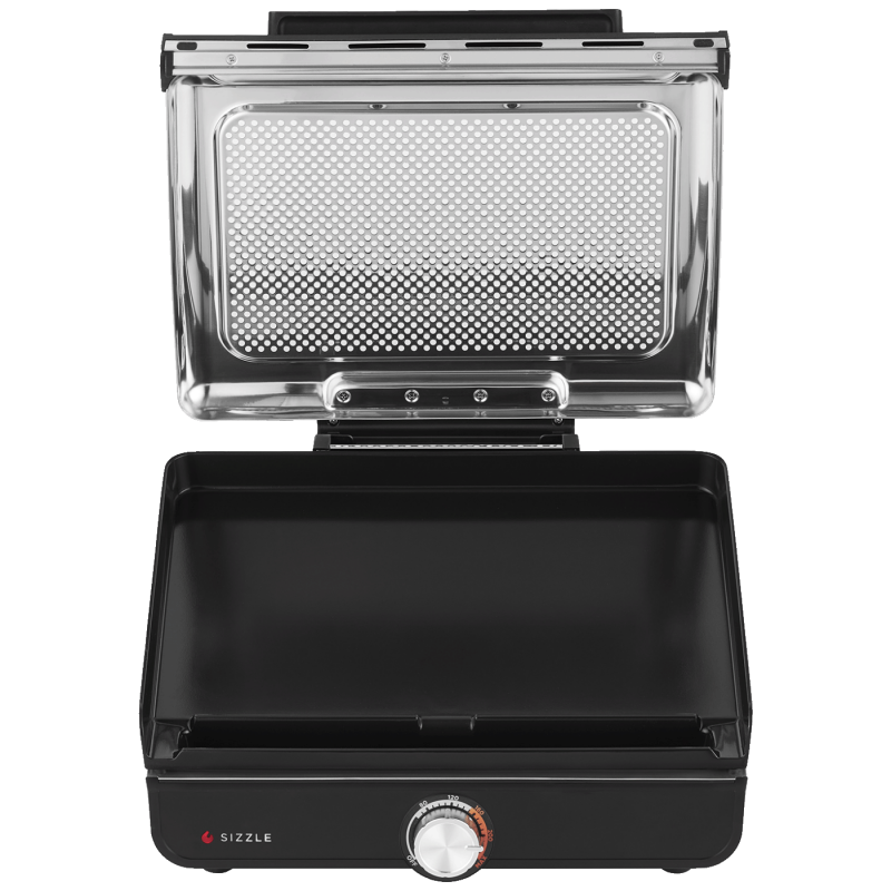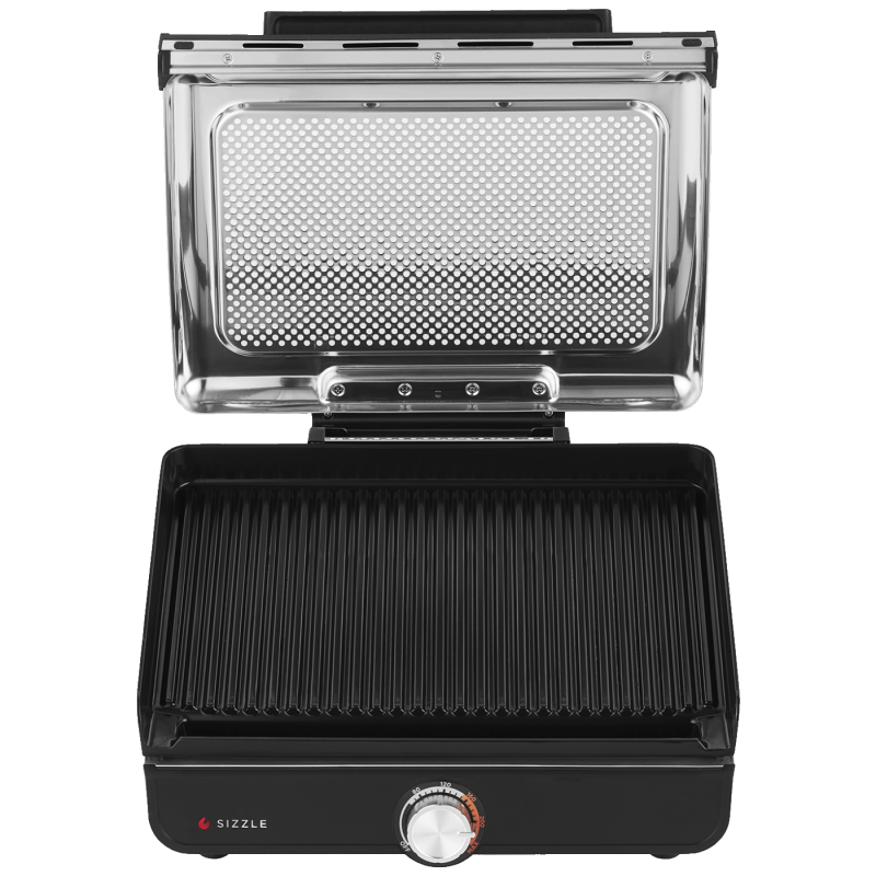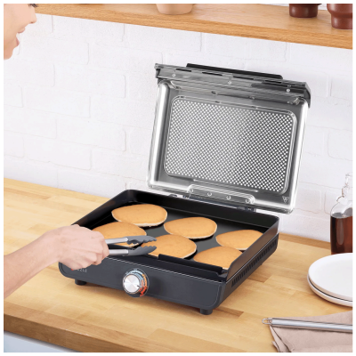 Sa zatvorenim poklopcem, hrana je koncentrirana na temperaturi za autentični okus pečenja na žaru i savršeno pečenje - idealno za kuhanje delikatne hrane ili proteina bez prekuhavanja ili za hranu koja zahtijeva okretanje, poput jaja, palačinki i prženih krumpirića. Poklopac se može skinuti - savršen za tostirane sendviče, debele odreske ili smrznute škampe. Odvojivi, perforirani poklopac sprječava prskanje i može se ukloniti radi lakšeg čišćenja kako bi se spriječilo nakupljanje masnoće.