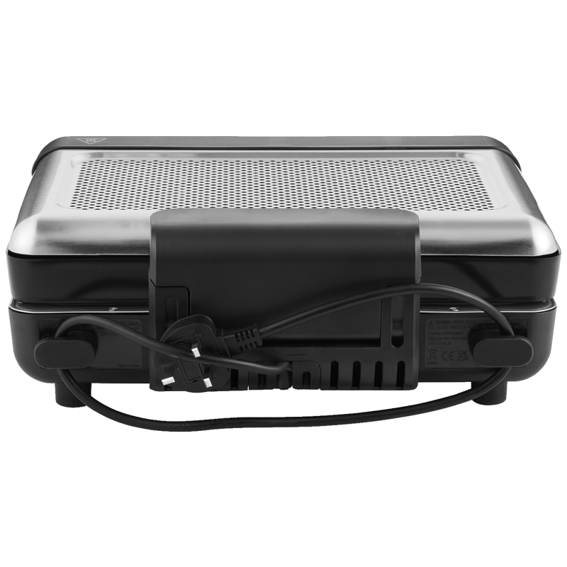 Perforirani poklopac se može skinuti i lako prati u perilici posuđa ili ručno. Uklonjive ploče za kuhanje imaju neprianjajući sloj za jednostavno čišćenje. Posuda za mast hvata masnoću koja curi i sokove od kuhanja, osiguravajući čisto kuhanje i jednostavno čišćenje. Praktično spremište za kabele održava sve uredno.
