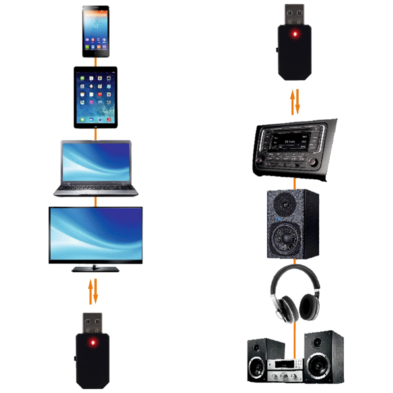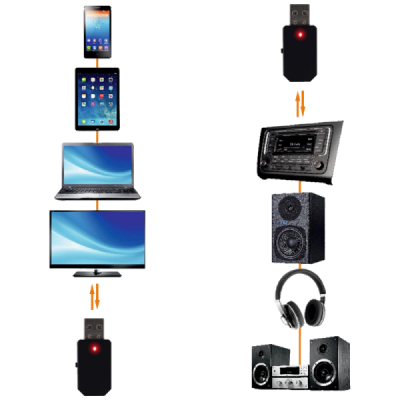Primjena ovog adaptera je višestruka. Kao BT transmiter, možete ga koristiti za povezivanje sa TV-om, računalom, multimedijskim playerom, HiFi opremom i drugim uređajima kako biste bežično slušali glazbu. Kao BT receiver, ovaj adapter Vam omogućava da ga povežete sa auto radiom, slušalicama, HiFi opremom, pojačalom, aktivnom zvučnom kutijom i drugim uređajima, kako biste ih pretvorili u bežične uređaje.