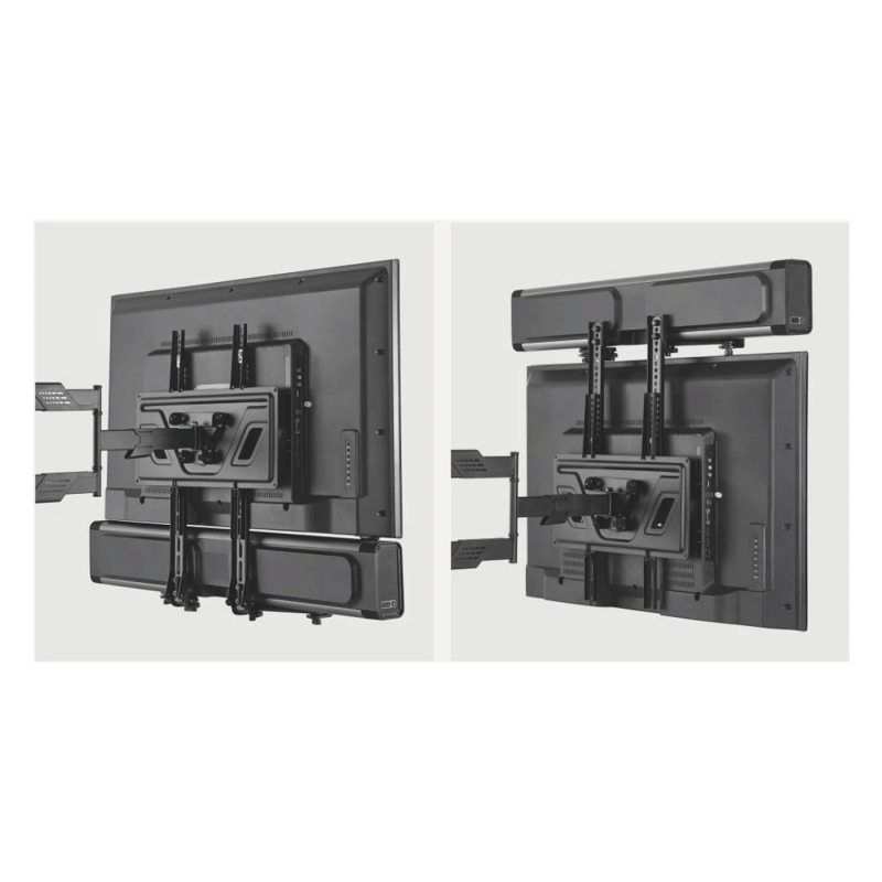 Universal nosač Soundbar Mount (do 15 kg) Univerzalni nosač za soundbar omogućava montažu vašeg zvučnika ispod ili iznad televizora, bez bušenja dodatnih rupa u zidu. Idealno rješenje za uredan i efikasan izgled multimedijalnog sistema. Ovaj montažni komplet podržava soundbar uređaje težine do 15 kg, što pokriva većinu modela na tržištu. Izrađen je od čvrstog čelika, s podesivim držačima koji se prilagođavaju različitim dimenzijama soundbara i montažnim točkama. Montaža je jednostavna — nosač se može pričvrstiti na VESA nosač TV-a ili direktno na zid, ovisno o konfiguraciji koju imate. Držači su obloženi pjenastim slojem koji sprječava grebanje i vibracije. Uređaj također omogućava mali pomak prema naprijed/straže kako bi se postigao bolji zvuk i estetski sklad između televizora i soundbara. • Maksimalna nosivost: 15 kg • Materijal: čelik visoke čvrstoće • Podešavanje: širina, dubina i visina držača • Kompatibilnost: montaža na VESA nosač ili direktno na zid • Zaštita: pjenasti jastučići protiv grebanja i vibracija • Priloženi hardver: vijci, matice i alati za montažu Universal nosač Soundbar Mount do 15 kg predstavlja praktičan i efikasan način za integraciju zvučnika u televizorski sustav. Stabilan, prilagodljiv i jednostavan za montažu, omogućava uredan izgled i poboljšanje zvuka bez kompromisa.