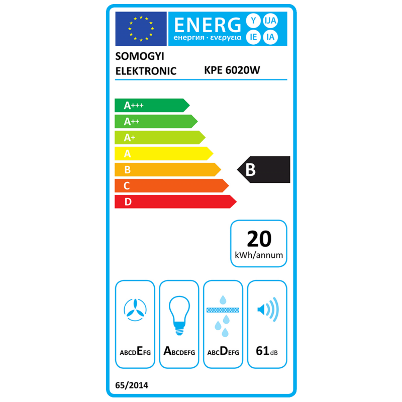 Izlaz zraka promjera 120 mm osigurava optimalnu ventilaciju. Dimenzije nape HOME KPE 6020W TORNADO su 600 x 500 x 140 mm, a klasični bijeli dizajn uklapa se u svaki kuhinjski prostor, uz energetski štedljiv rad u energetskom razredu B.